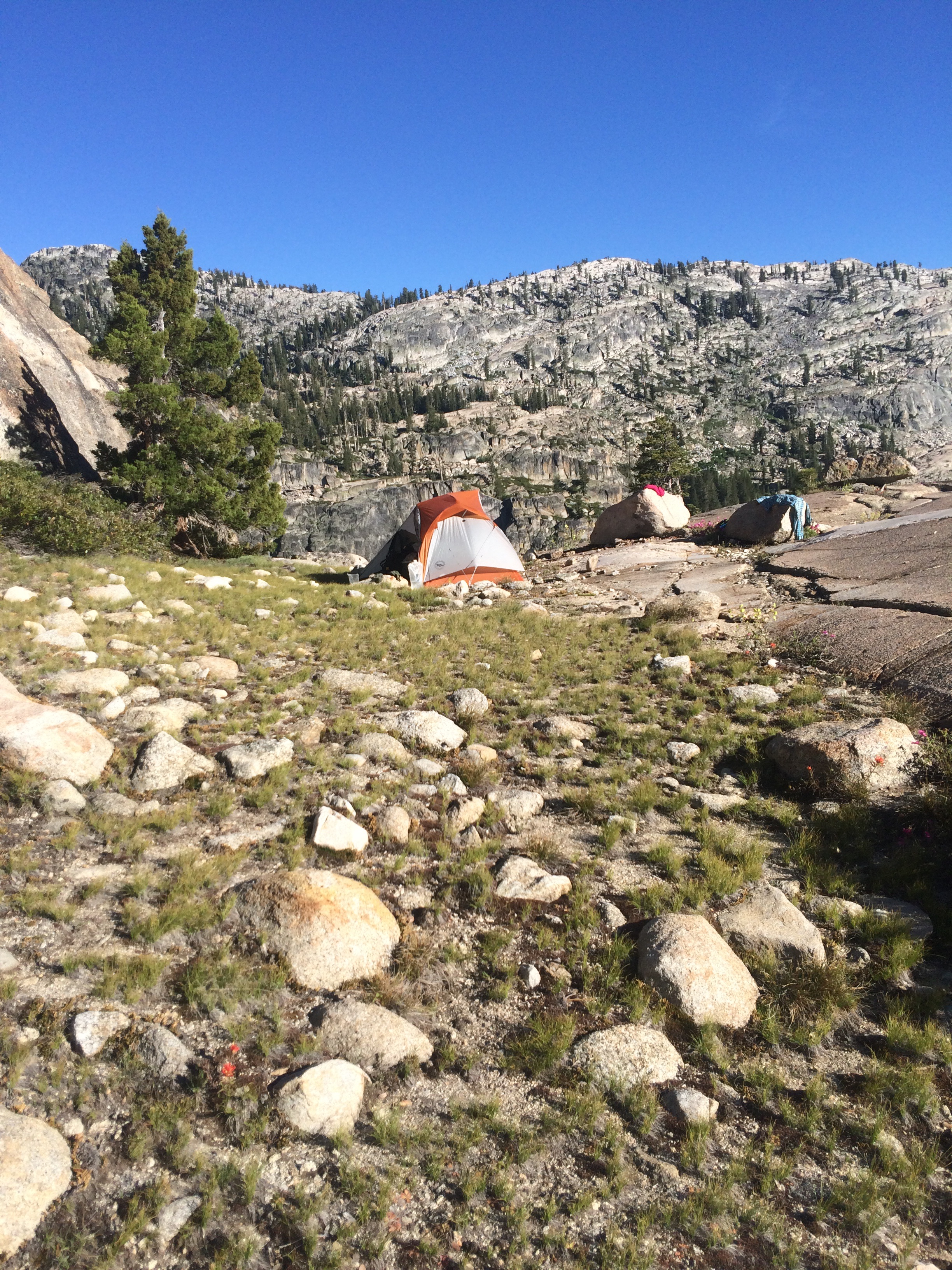 I found a perfect campsite, then another the following night in the rocks on a ledge out of bugs with a vast view. The next day was more steep trail until finally, on the fourth day out of Tuolumne, the grade was flatter and I could get back to 20+ mile days. If you can’t keep to your schedule you’re going to run short on food, and that sucks. Food is fuel, food is energy. Sonora Pass is beautiful but I hated the 12 mile climb in the freaking wind. I picked up resupply from Keri at Sonora Pass Resupply (another great business supporting hikers!) and kept going.