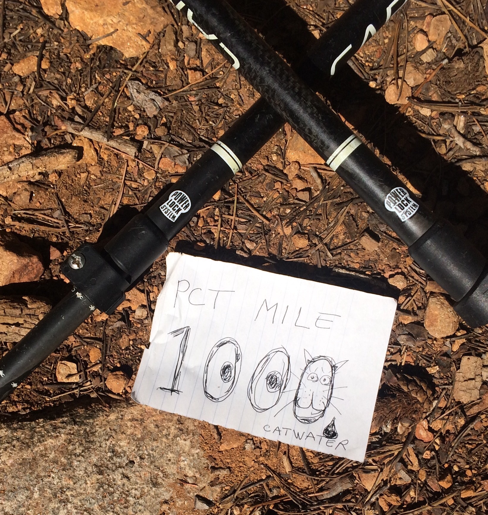 At the end of the day I walked a log across a deep stream and camped up a side trail within eye shot of several other camps. The next morning I went a few miles before checking my GPS app to see where I was. Whoops. Back the way I came, I hiked 7 miles not on the PCT. Feeling annoyed with my sleepwalking, as I got back to the junction, I saw 2 men on rocks next to the stream with what looked like a hiker garage sale spread out in the sun around them. Howdy Doody, clad in navy blue underwear and a gold Star of David, stood next to tall fully dressed Lucas, and told me he slipped off that log crossing and got swept head first down a waterfall, then trapped under a log as he tried to unlatch his pack straps. Lucas, crossing upstream, saw this happen and hustled downriver to pull him out. “He saved my life!” Howdy kept saying, “I would have died.” They retrieved most of his gear and had been drying it out as I merely walked a couple of hours in the wrong direction. It’s all relative. Later on the trail, Lucas caught up with me and I told him, “Lifeguard, your trail name should be Lifeguard.” He smiled and said he liked it. I think it will stick.