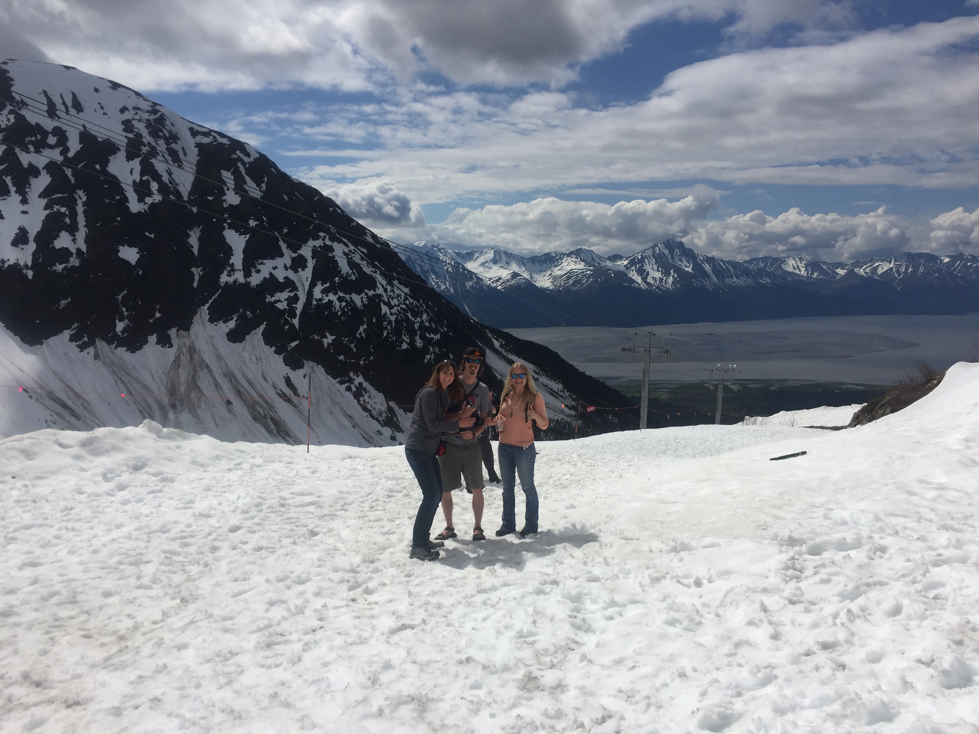 6/26 Trudging up to the pass this morning, I was passed by 6 guys, including Tennessee and Bones. I am so ridiculously pleased knowing there are other hikers around. When I got to the top of the pass, all I could see was a massive snow bowl I had to descend after getting over a cornice. As I stood there looking, a voice came up, “To your right! Follow the postholes!” Thank you, Bones! It was steep, sketchy and scary. I used my micro spikes again, I could tell by the footprints that the guys just went down in their trail runners. At the bottom, after a long, long way, my legs were shaking as I continued following footprints as best I could through snow, blowdown and overflowing creeks. Suddenly a pair of day hikers! Then 2 more with a dog, Cathy, Chip and Bear. After hearing me snivel about my ankle, they offered me a ride to Twin Lakes at the end of the day and their out-and-back hike. Too good to pass up as I have a box at Twin Lakes anyway.