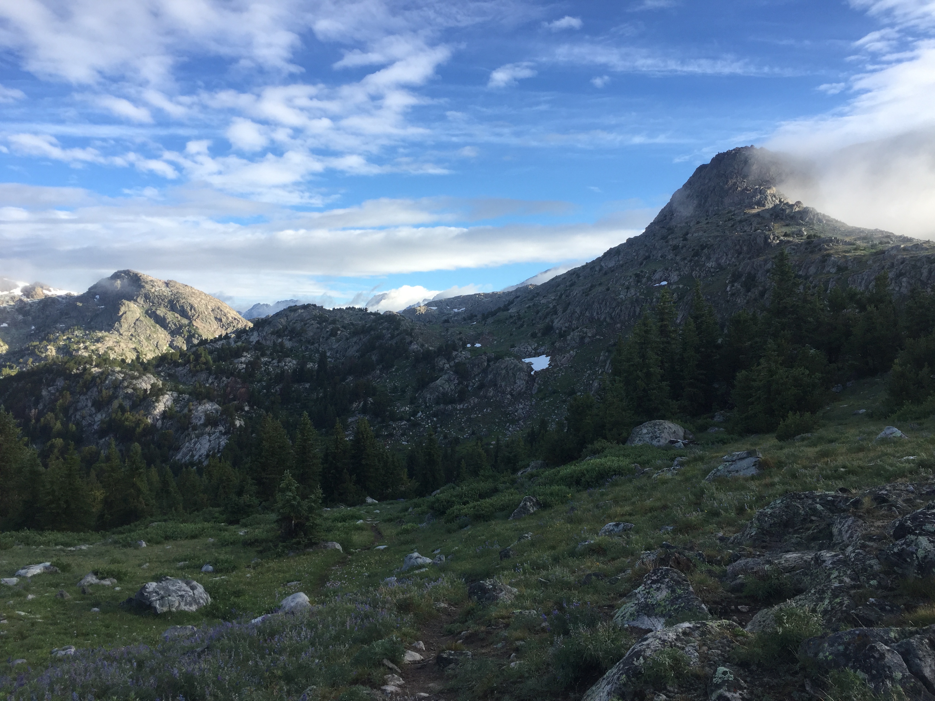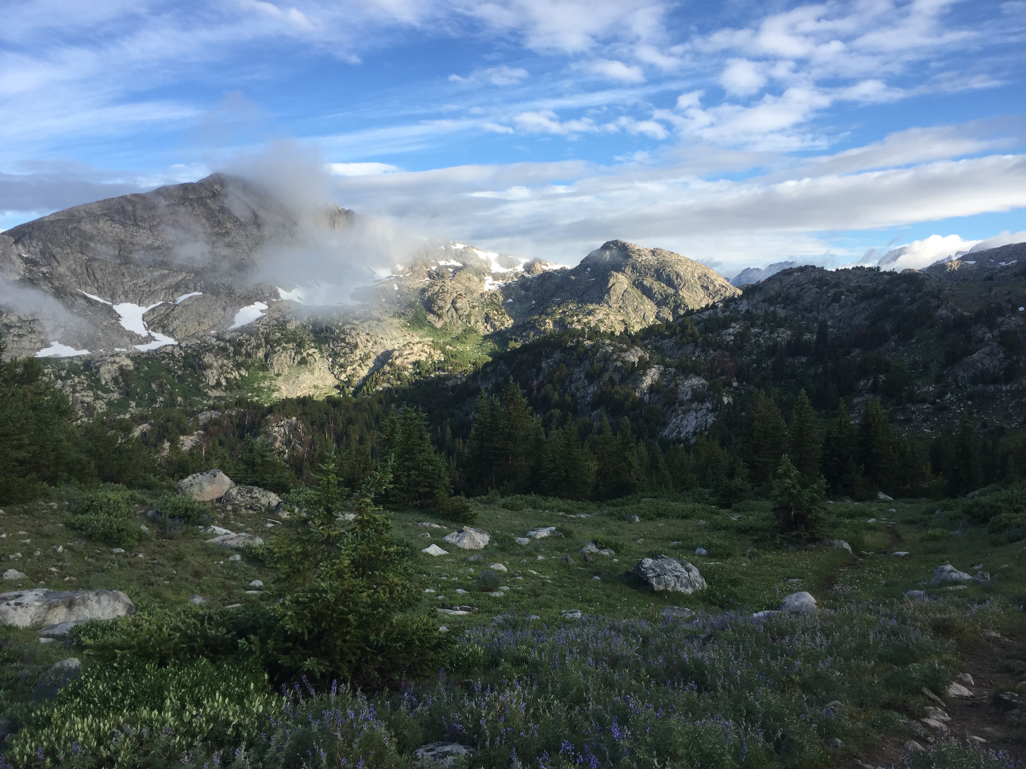 I set up a flight home from Denver, a flight from Wyoming to Denver, a shuttle ride from Dubois, WY to the regional airport and a motel room the night before. The eclipse has been my obsession and if I kept to my original hiking schedule I would have been far enough ahead that I’d have to figure out how to get back south to the Dubois area. When I told Papa Raven this, he tried to hide the look that told me he thought I was nuts, “You’d still be in the path and would see a 96% eclipse.” I know, I know, it’s just a thing I’m fixed on–to be high in elevation, open country, 100%. I also know that with the near constant cloud cover of the last couple of weeks, I may only see brief darkness, no black disk covering the sun. Who knows?
