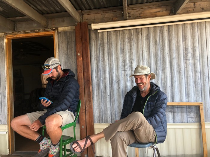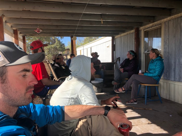 The music at the neighbors’ last night was a treat. Jennifer, and Rick(?) played guitar and sang. Judging by their strong Arkansas and Oklahoma accents and cowboy get-ups, I’d anticipated fingernails-on-chalkboard country music, but he sang the most beautiful covers of Talking Heads, Jimmy Buffet, and Nirvana I’ve ever heard. These 2 people moved out to this tiny town to escape addiction and death. I think they love recruiting new people (hikers) to their mobile home and sharing, just sharing, their acoustic music and unique voices. They fed us pizza and beer and true confessions. Art.