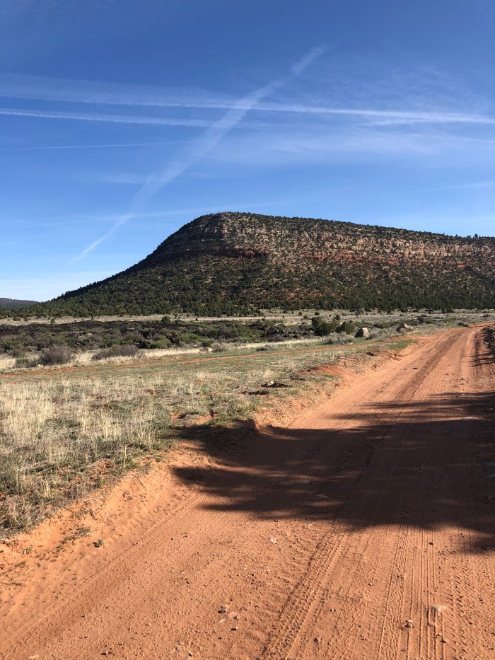 More road. Listened to audiobooks. Austin from San Antonio, cyclist I met at Toaster House, came up behind me and chatted for a bit, asking if I’d like some snacks. He’s getting into Grants today–what a difference mileage range riding gives you from hiking.