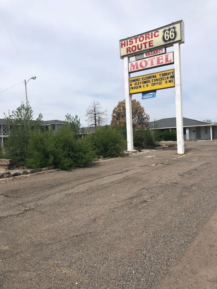 Heading to town, to Grants, and as usual I just want to be there. Dirt road to gravel where for some weird reason all the SUVs and minivans slowed down so I wouldn’t have to inhale their dust plumes and not one truck did. Despite the dust and discourtesy, the Zuni Canyon was beautiful when I looked up from all the empty booze containers. As I got into Grants I turned on to old Route 66, like Cuba, NM, buildings mostly abandoned, for sale, deteriorating. Fascinating, I like it. I’ll stay a night or two in Grants, then Greyhound to Albuquerque, fly to Seattle, meet my sister, then fly to Edinburgh. Yay, Scotland for a couple weeks!