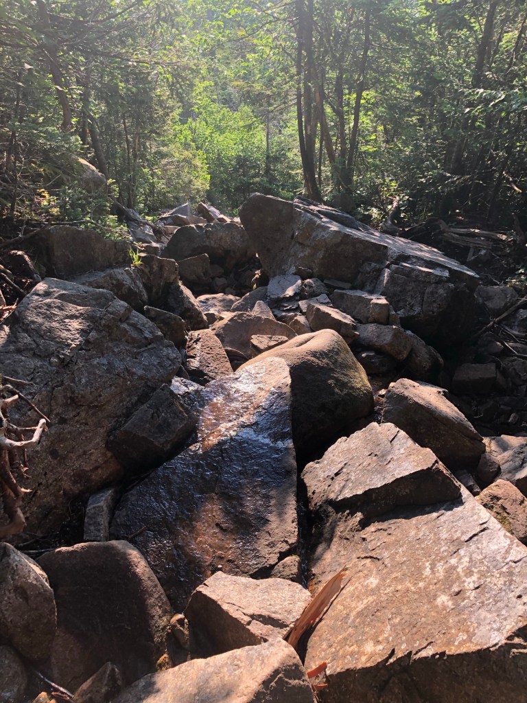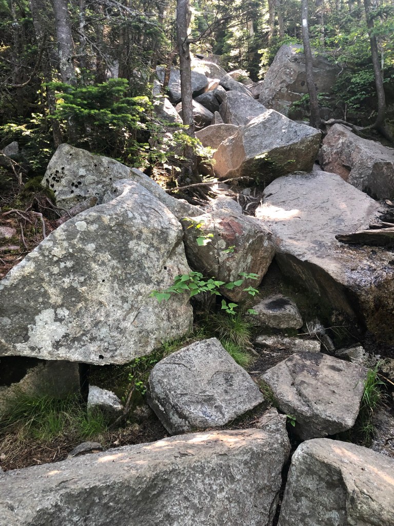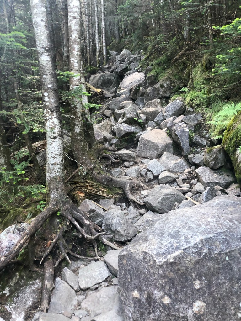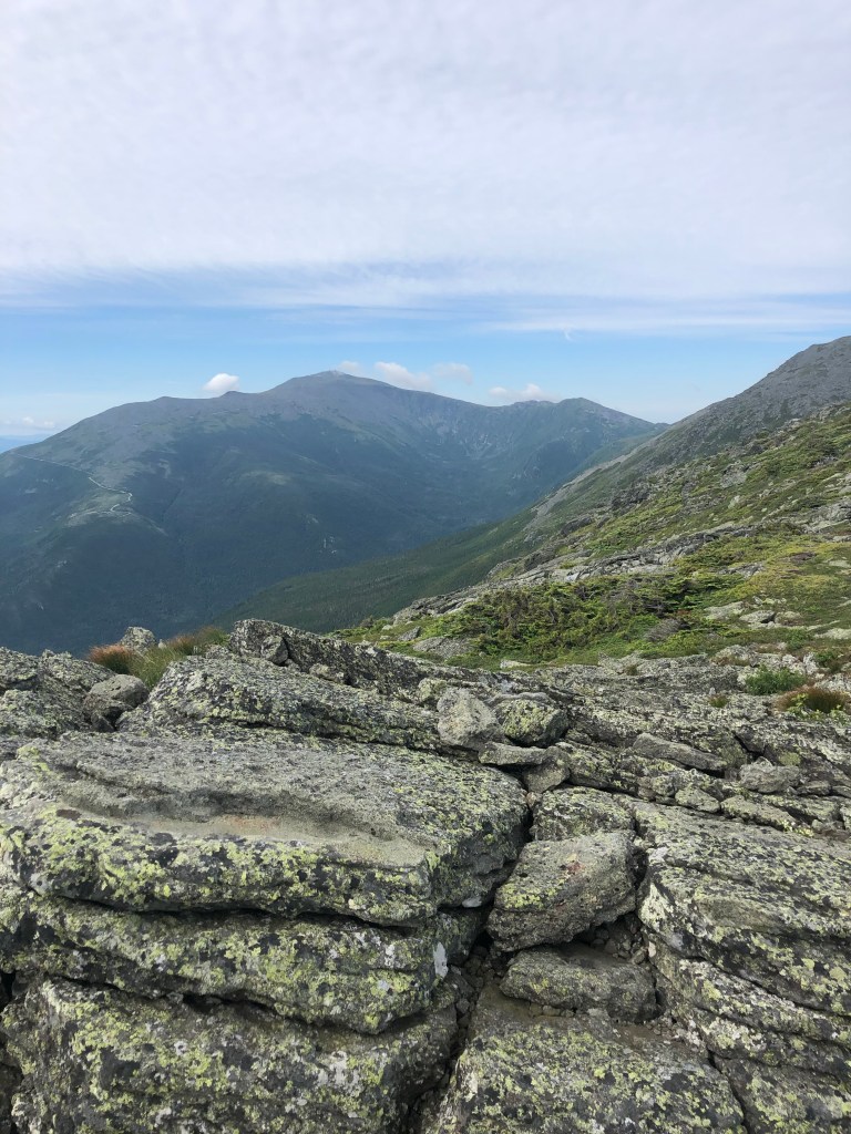 Slingshot and B stayed a second night at the lodge but CW and I continued to Carter Notch Hut after a straight up through rocks that briefly plateaued at Top Cat gondola from the Wildcat Ski Resort. Another great Croo and food. I think this is the last AMC hut and we’re near the end of the Whites. CW snored all night in the bunk room, his cold isn’t any better. Had to use a buff to hold my bundled up puffy over my earplugs to down out the symphony of my hiker roomies. The huts have been great but the group sleeping arrangements are getting to me. I’d like some solitude.