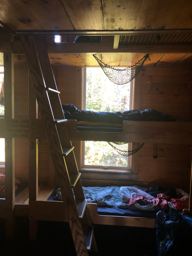 It was a super short day with plenty of time to chat with other hikers, long haulers going SOBO or NOBO, casual short haulers enjoying the views, wind protection and food. Kevin, Crossword, B, Slingshot, Poncho and Pep, along with others whose names I didn’t get or forgot. I had a great little nook in the 10-12 person bunk room. The whole hut held 60 I think?