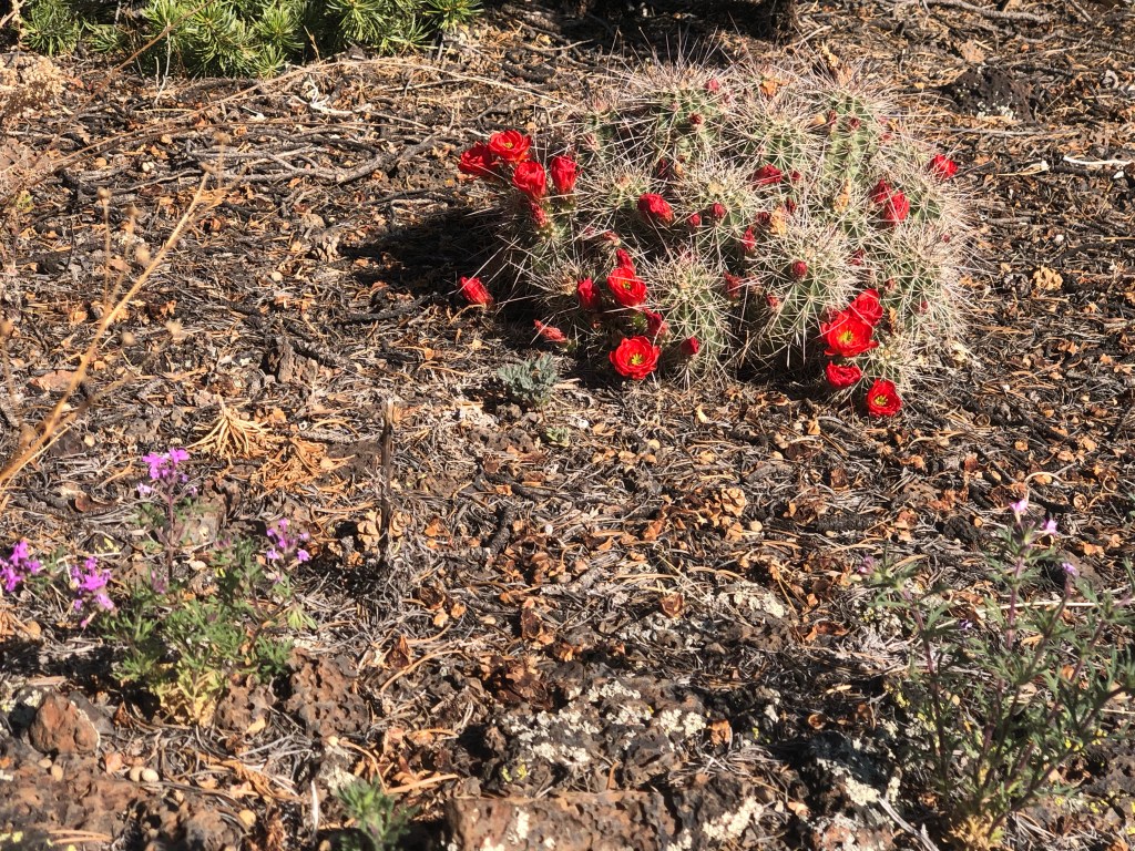 I didn’t pick up enough water this morning at the last water source which was just a mile from our turnout camp. A couple miles on trail after the dirt road ended, I heard dirt bikes coming at me. They are absolutely forbidden on this trail and it is clearly marked. And the 3 of them were quite rude. The lead guy was barreling uphill at me, didn’t even attempt to cut his speed, give me the right-of-way, get off the bike or do anything. I had to leap off the trail so they could continue to tear up the tread. Not a nod, not a wave, nothing. Jerks. Real men walk on their own two feet.
